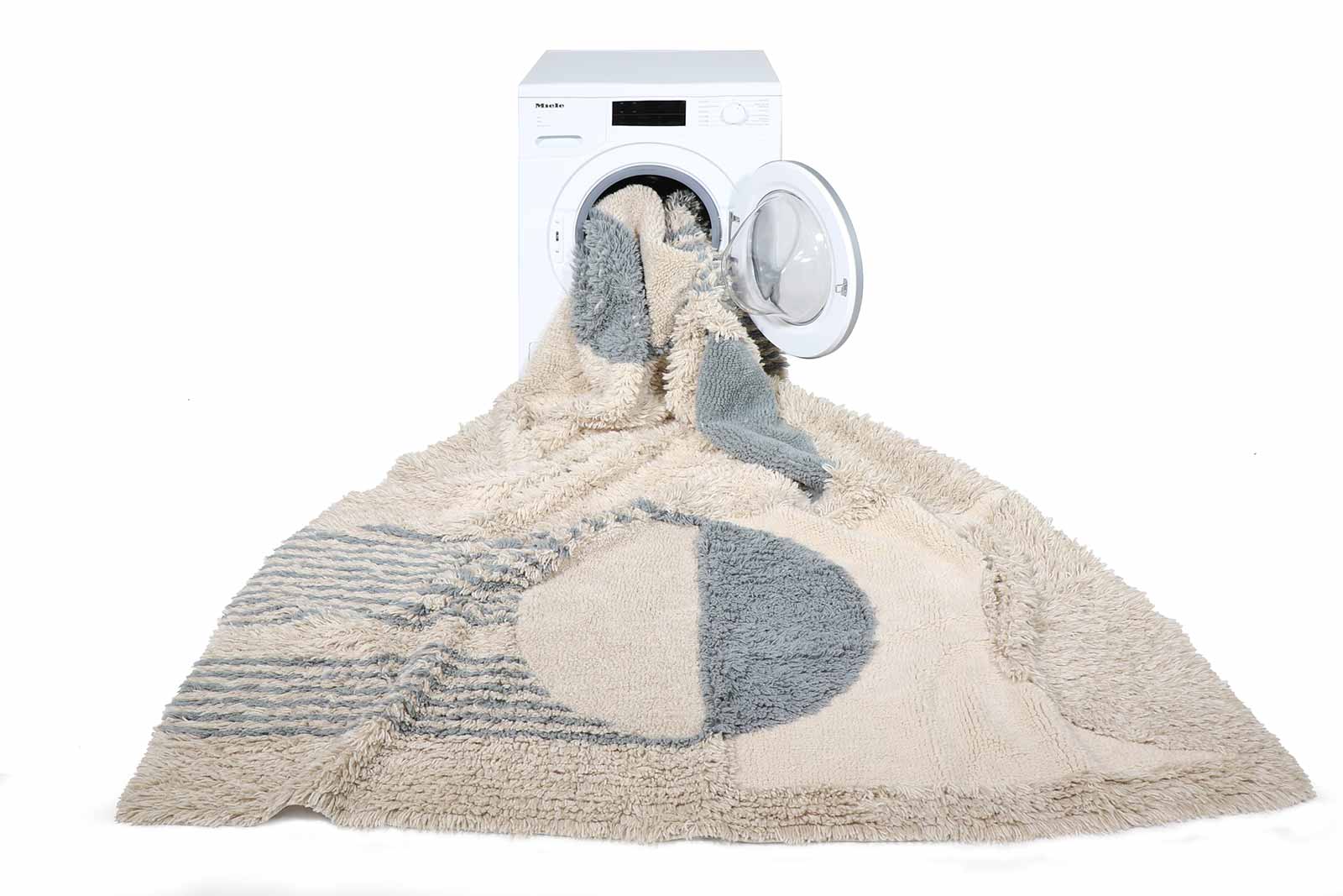 Een katoenen draagtas en een anti-slip onderlaag zijn inbegrepen bij elk vloerkleed.